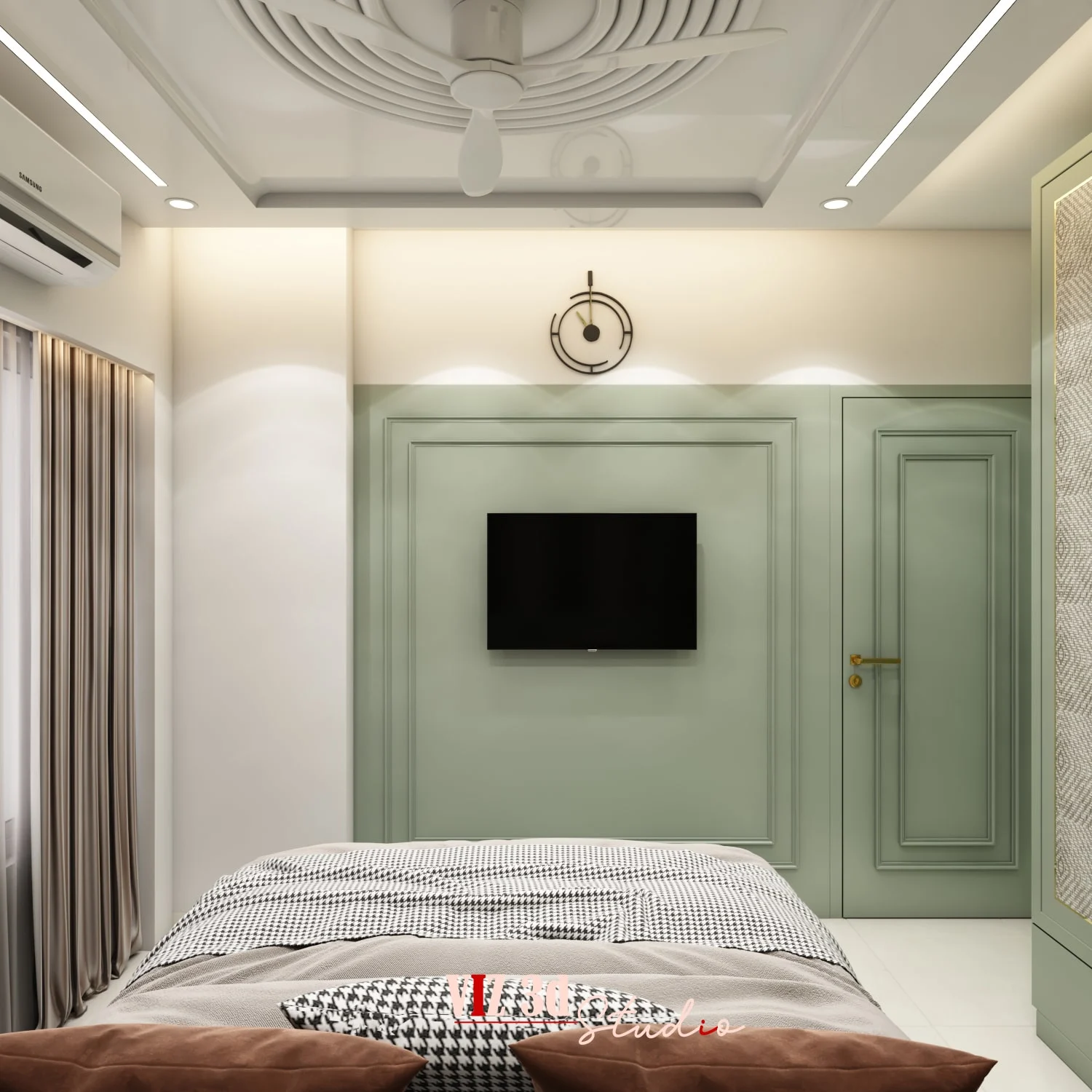 The Kid’s Bedroom project is a modern residential interior visualized to clearly present layout, materials, lighting, and a calm child-friendly ambience before execution. Created through professional architectural rendering services by an experienced 3d visualizer, the design features a well-planned bed layout, integrated storage, soft fabric finishes, textured wall panels, subtle metallic accents, and warm ambient lighting. Balanced camera angles, realistic textures, gentle reflections, and a soothing palette of muted greens and warm neutrals result in a clean, comfortable, and presentation-ready visualization that supports confident client decisions.