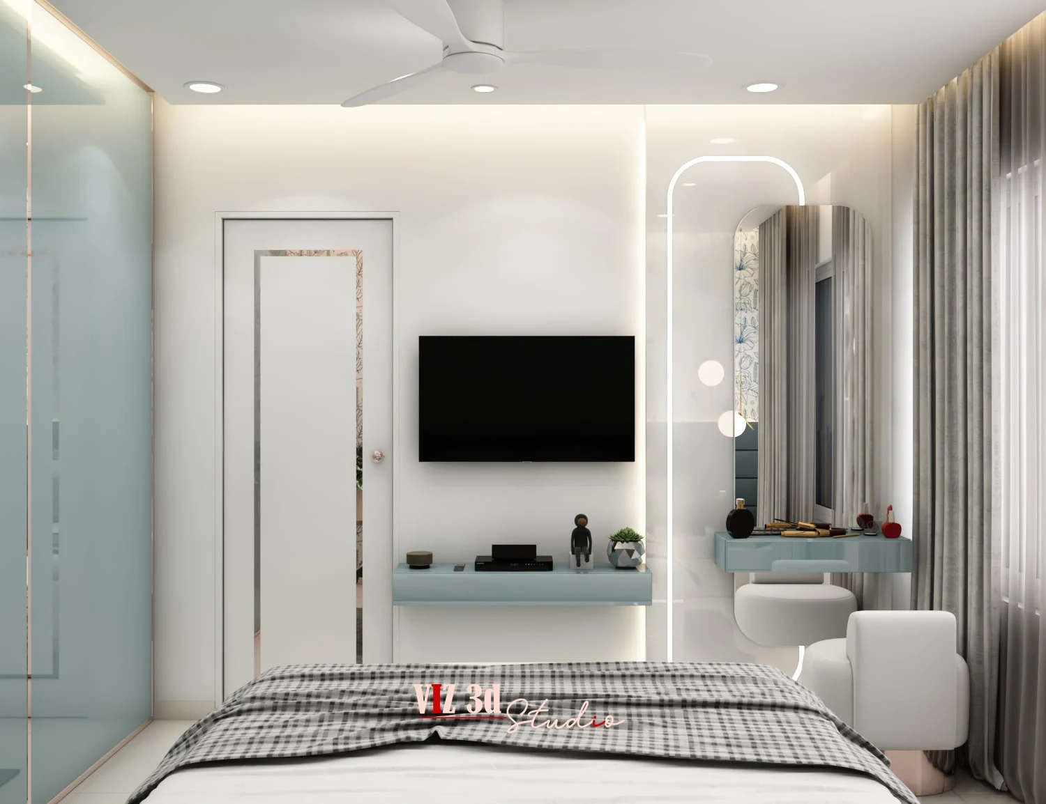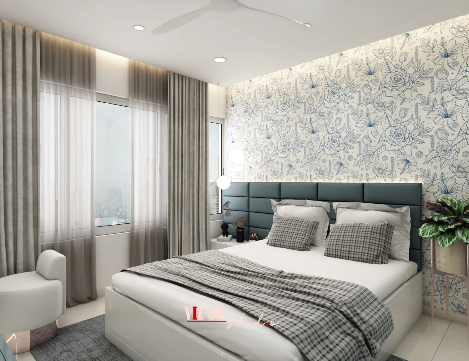 The KIDS BEDROOM project is a refined interior visualization created to deliver a calm, functional, and visually engaging space through professional architectural rendering services. As a trusted 3D visualization service provider, the goal was to accurately represent space planning, material realism, lighting balance, and furniture proportions for clear client understanding and presentation. The design features a thoughtfully arranged layout with an upholstered bed, soft fabric textures, floral wallpaper detailing, layered curtains, and a glass sliding partition that enhances spatial depth and openness. Soft HDRI daylight combined with recessed and indirect lighting creates gentle shadows and a soothing ambiance, while carefully chosen camera angles highlight layout efficiency and design clarity. High-resolution rendering captures realistic reflections, fabric folds, glass transparency, and clean surface finishes, supported by a neutral, modern color palette that feels both child-friendly and timeless. The final visualization successfully enhances design communication, presentation impact, and client confidence through a polished, photorealistic result.