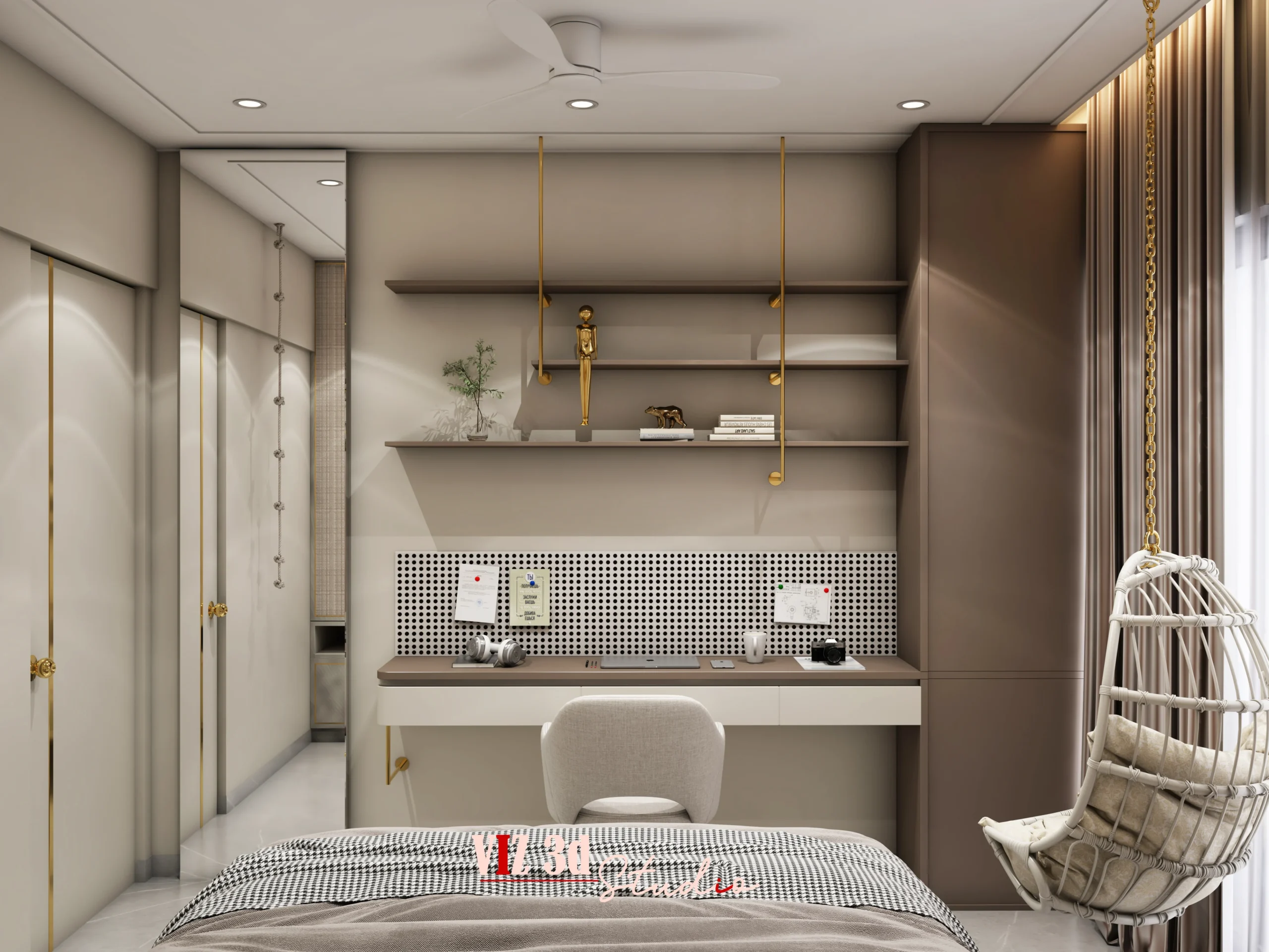 Kids Bedroom is a modern residential 3D visualization designed to showcase a calm, functional, and visually balanced space for a growing child. The design integrates smart storage, a compact study area, and soft luxury finishes, ensuring comfort and usability without visual clutter. Neutral tones, realistic materials, and carefully balanced lighting enhance depth and realism, resulting in a high-quality visualization ideal for client presentations and professional portfolios.