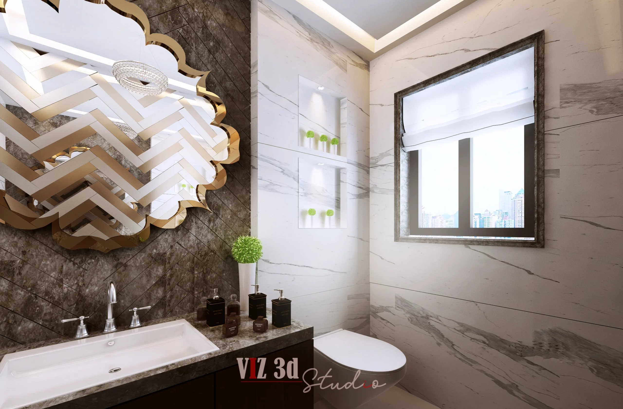 This RESIDENTIAL COMMON TOILET architectural visualization 3d project required detailed 3d architectural rendering to showcase a minimalist, high-end design, essential for the architecture designer. The concept focused on a monochromatic palette of light grey tiles, white fixtures, and subtle black accents.
