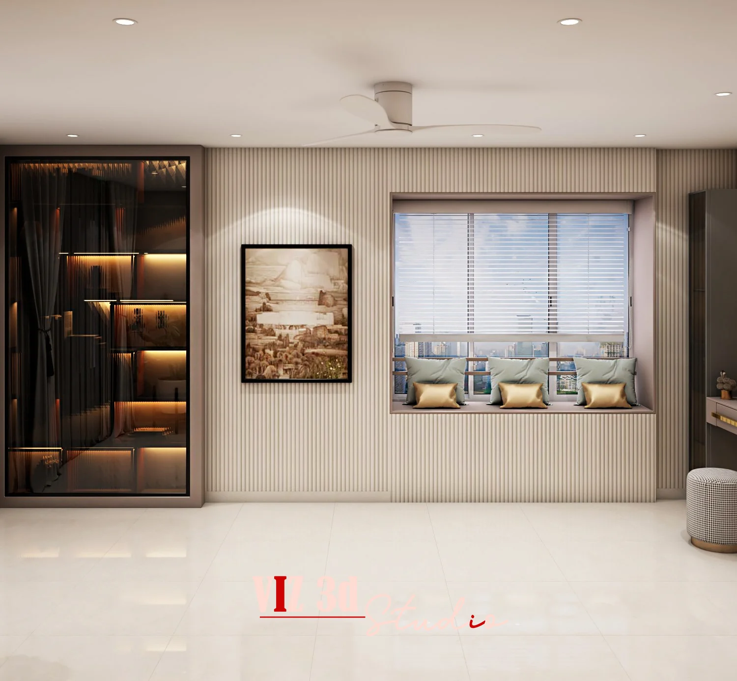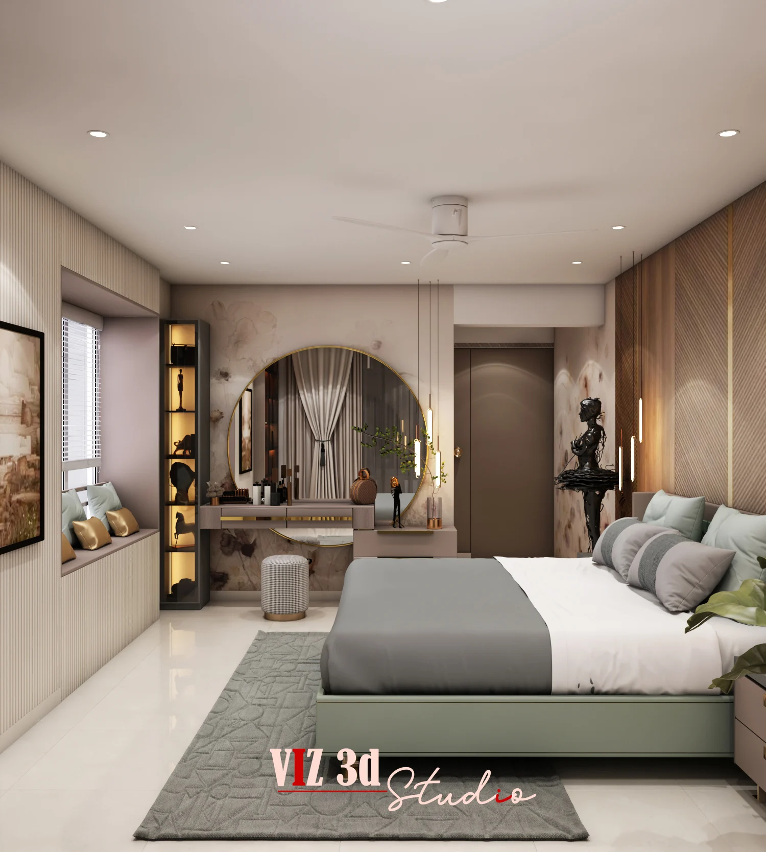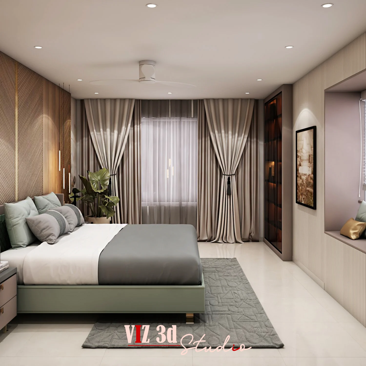 The Master Bedroom 3D visualization project aimed to create a modern, luxurious space with a focus on comfort and aesthetics. The design features sleek furniture, soft neutral tones, and functional elements. Lighting, including soft shadows and indirect effects, enhances the serene atmosphere. Textures are carefully detailed, from the bed’s fabric to reflective surfaces, showcasing realism. Advanced rendering techniques ensure high-resolution quality, and the final result perfectly captures the client’s vision, elevating their brand and meeting their design needs.